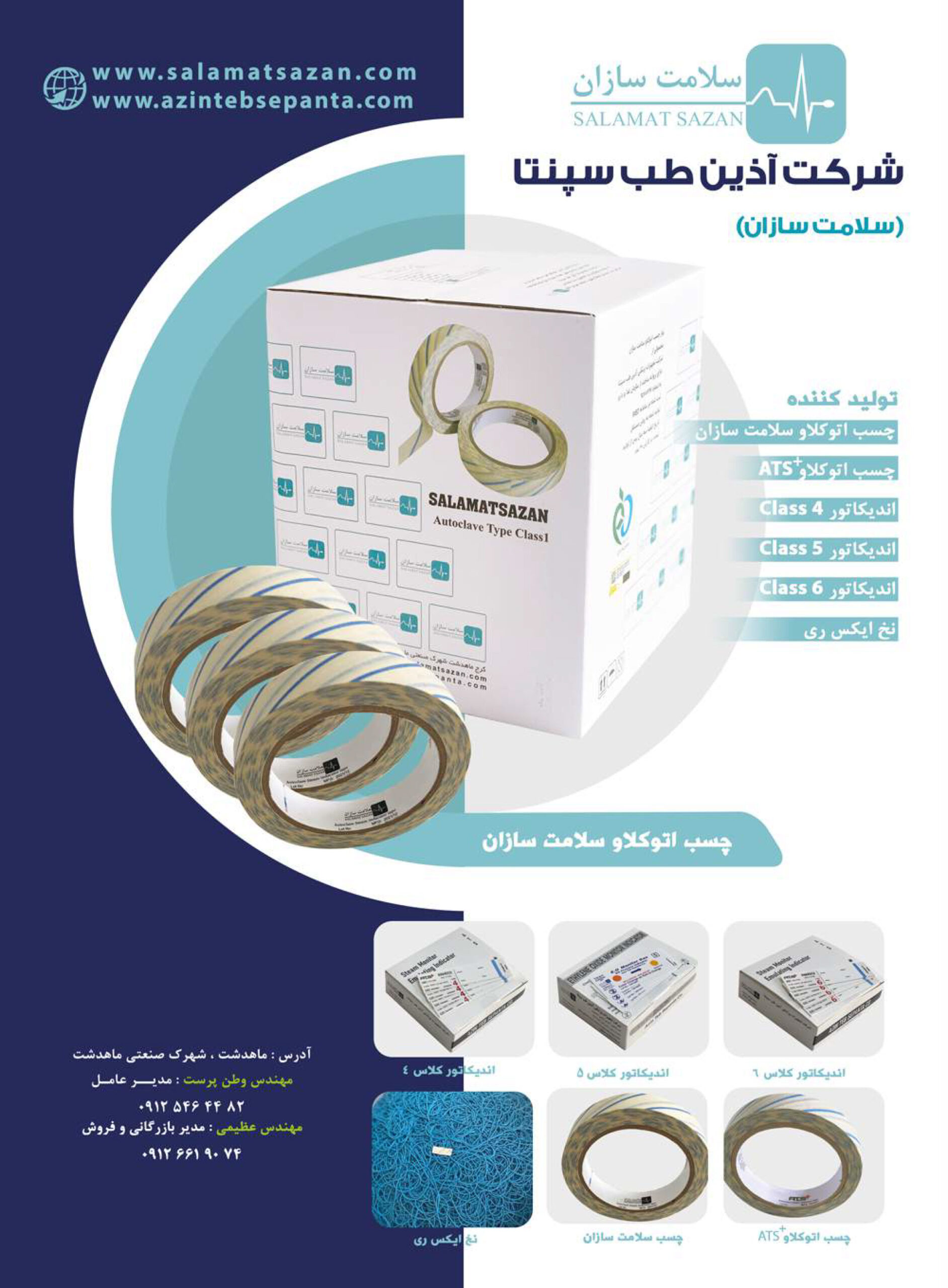 تولیدات شرکت آذین طب سپنتا در زمینه تجهیزات پزشکی و شستشو و استریل (csr) می باشد که به صورت مستقل تولید و با برند های سلامت سازان ، به فروش می رسد. از جمله این محصولات می توان به کلاس یک چسب اتوکلاو ، اندیکاتور کلاس پنج اشاره کرد.